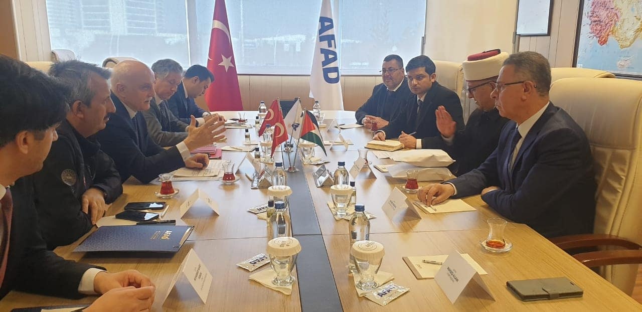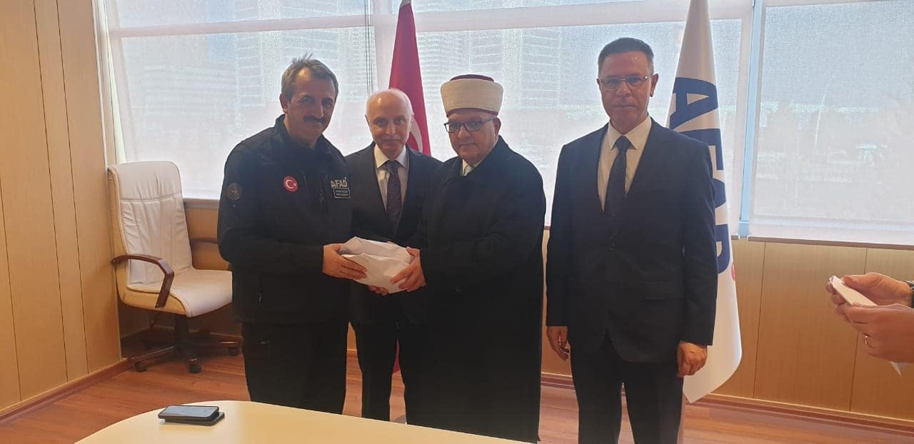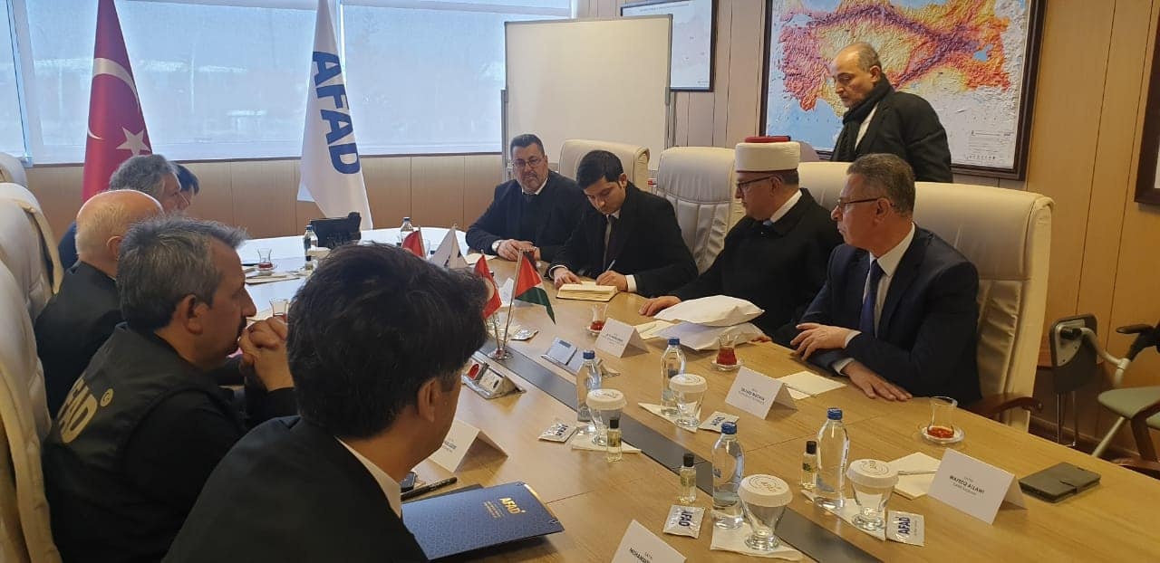 التقى سماحة الشيخ حاتم البكري وزير الأوقاف والشؤون الدينية يرافقه السفير الفلسطيني في أنقرة الدكتور فائد مصطفى، صباح اليوم في العاصمة التركية أنقرة، السيد يونس سيزار رئيس مؤسسة "أفاد" مؤسسة الكوارث والطوارئ التركية بحضور كل من نائب وزير الداخلية التركي الطيب اردال، وهاكان كاراجاي، من وزارة الخارجية التركية.